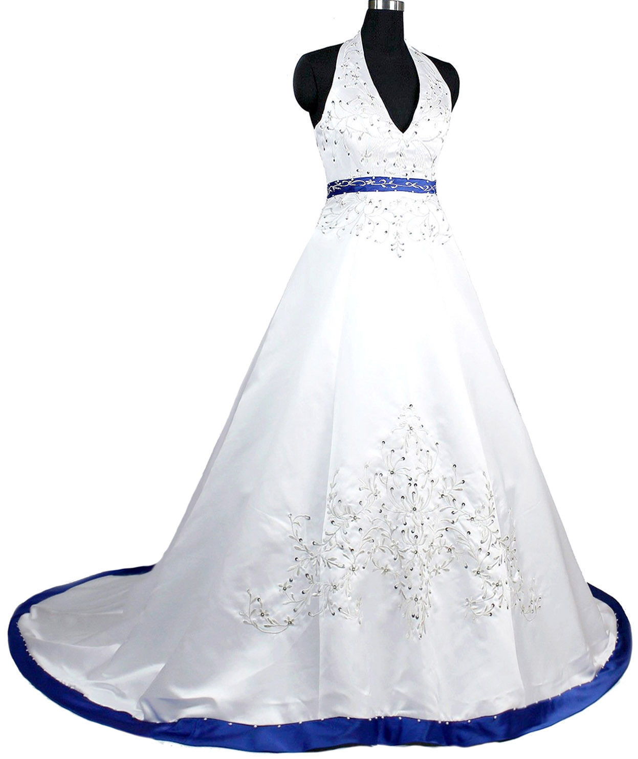 Royal Blue Wedding Dresses Long Satin Halter Beaded Sequined Chapel